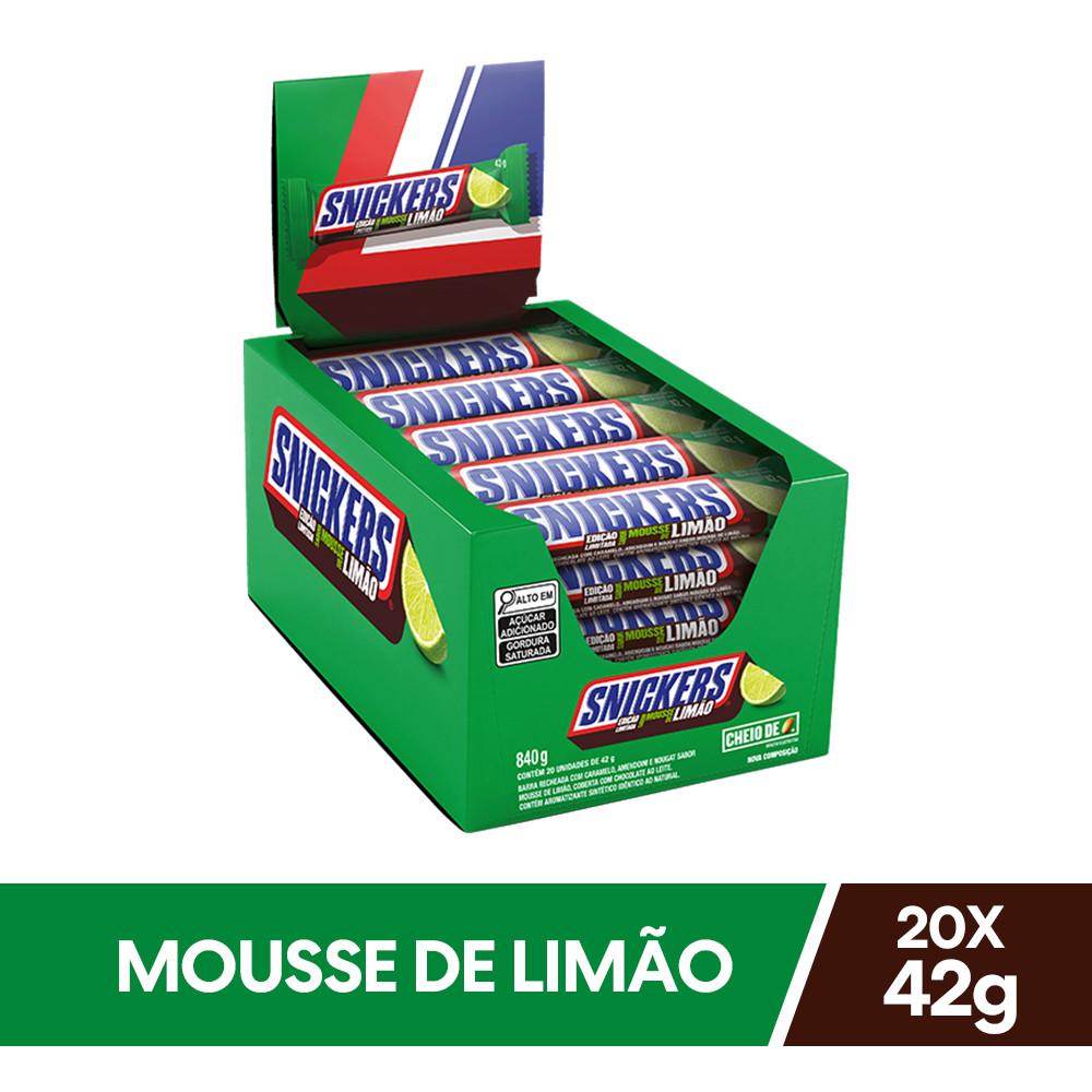 Chocolate Snickers Mousse de Limão caixa 840g com 20 unidades de 42g cada