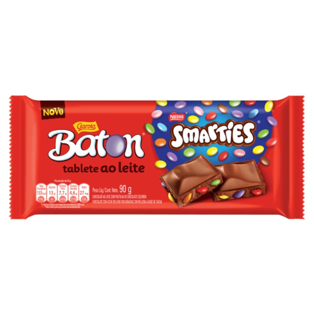 CHOCOLATE AO LEITE SMARTIES GAROTO BATON PACOTE 90G