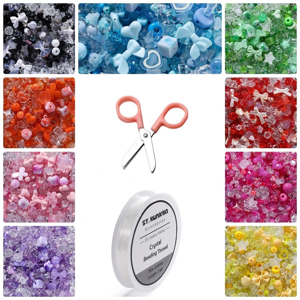 St. kunkka 9 Cores Conjunto de Contas Mistas Coloridas Conjunto de Contas Mistas Coloridas com Rosca Elástica e Tesoura, Apropriado para bricolagem artesanal