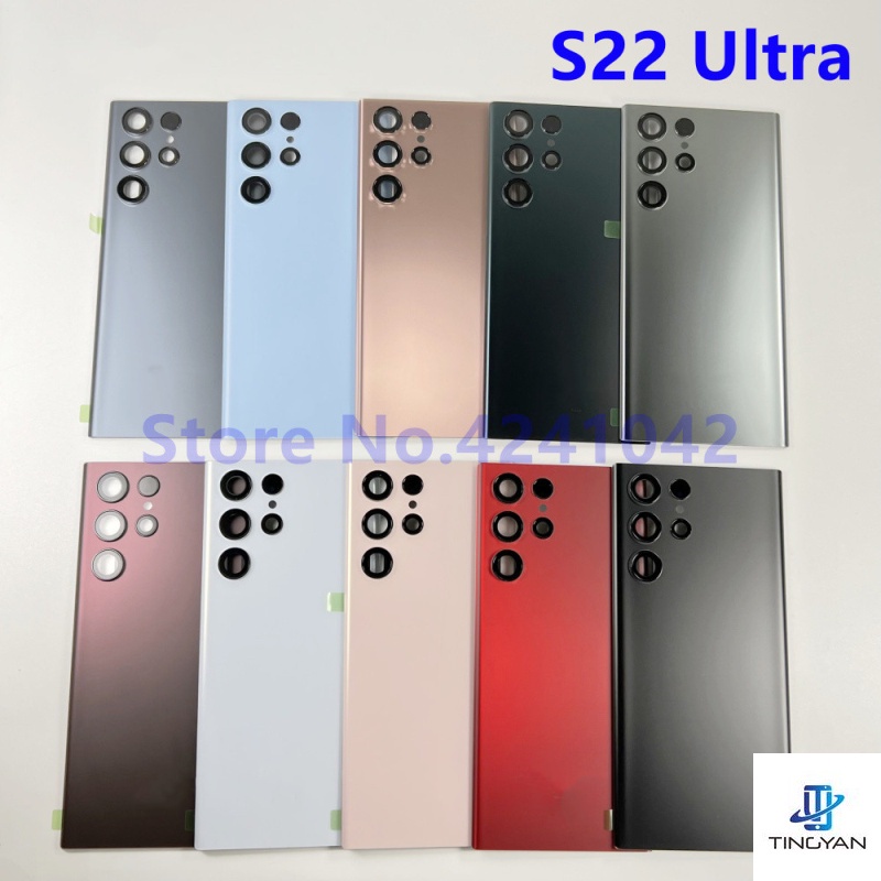 Para Samsung Galaxy S22 Ultra 5G SM-S908 S908B Tampa Traseira Da Bateria Peças De Reposição Porta Adesivo Com Lente Moldura Câmera