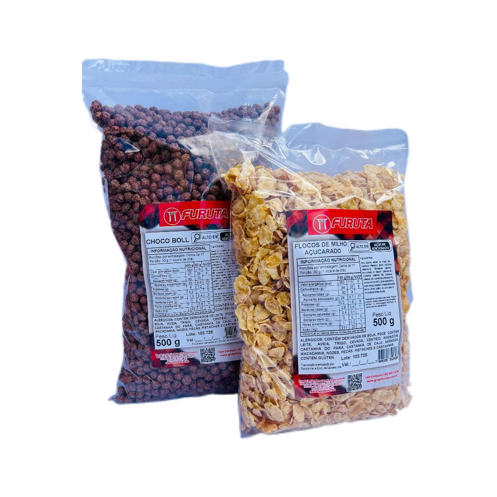 COMBO Sucrilhos – Flocos Cereal Furuta De Milho Com Açúcar- 500gr + Furuta Cereal Chocoboll – Sabor Chocolate 500g