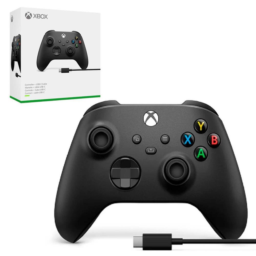 Controle Sem Fio Xbox Series S X e pc Carbon Black + Cabo USB C