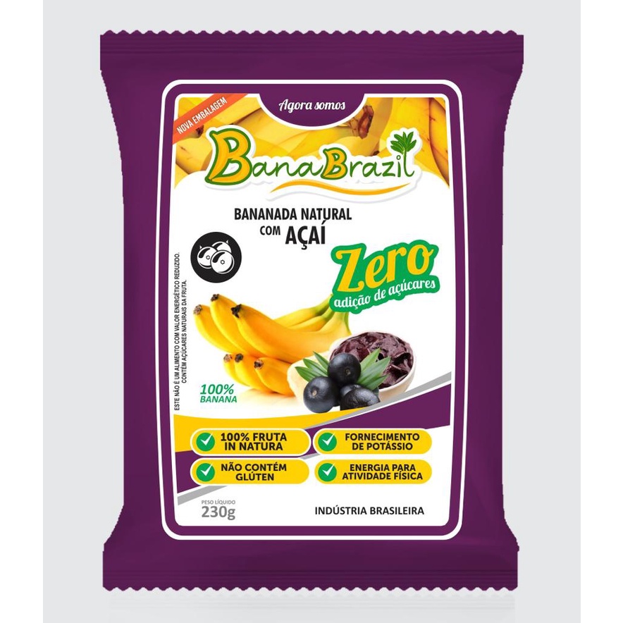 Bananada Bananinha Banabrazil Zero Acúcar com Açaí - 230 g - 10 unidades de 23 g