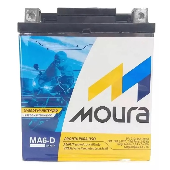 Bateria AGM Moto Moura 12V 6Ah MA6-D NXR BROS PCX DLX SH XR TORNADO KAWASAKI EX250 NINJA KFX450R