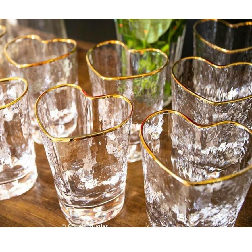 Copo De Vidro 1 unidade - Coração Borda Dourada 200ml Luxo