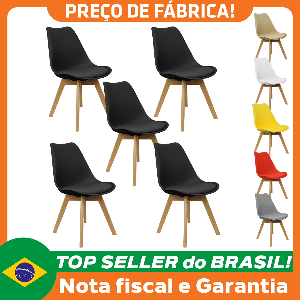 Kit 5 Cadeiras Charles Eames Leda Luisa Saarinen Design Wood Estofada Base Madeira