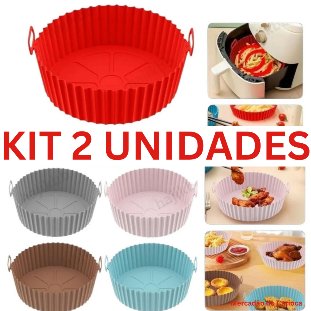 Kit 2 Formas Cesto de Silicone para Airfryer Fritadeira Elétrica Antiaderente Flexível Forminha