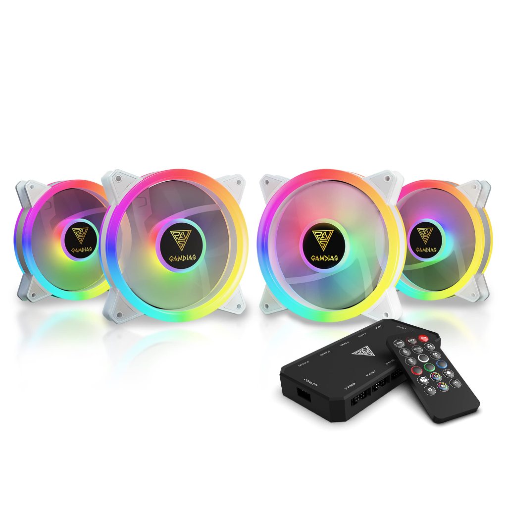 Kit Cooler FAN 4 Unidades GAMDIAS Aeolus RGB M2-1204R Branco
