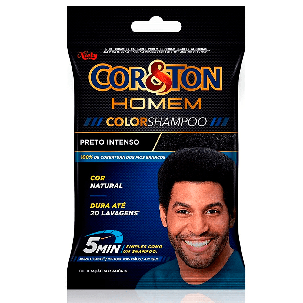 TINTURA 10ml SHAMPOO SACHÊ PRETO INTENSO COR&TON HOMEN SEM AMONIA