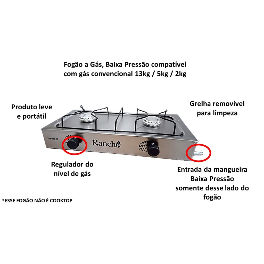 Kit Fogão 2 bocas De Baixa Pressão Completo Mangueira e Regulador de Gás Glp Botijão 13 kilos