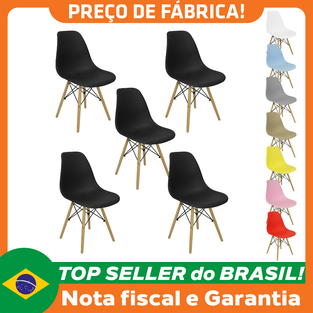 Kit 5 Cadeiras Charles Eames Eiffel Wood Design Varias Cores
