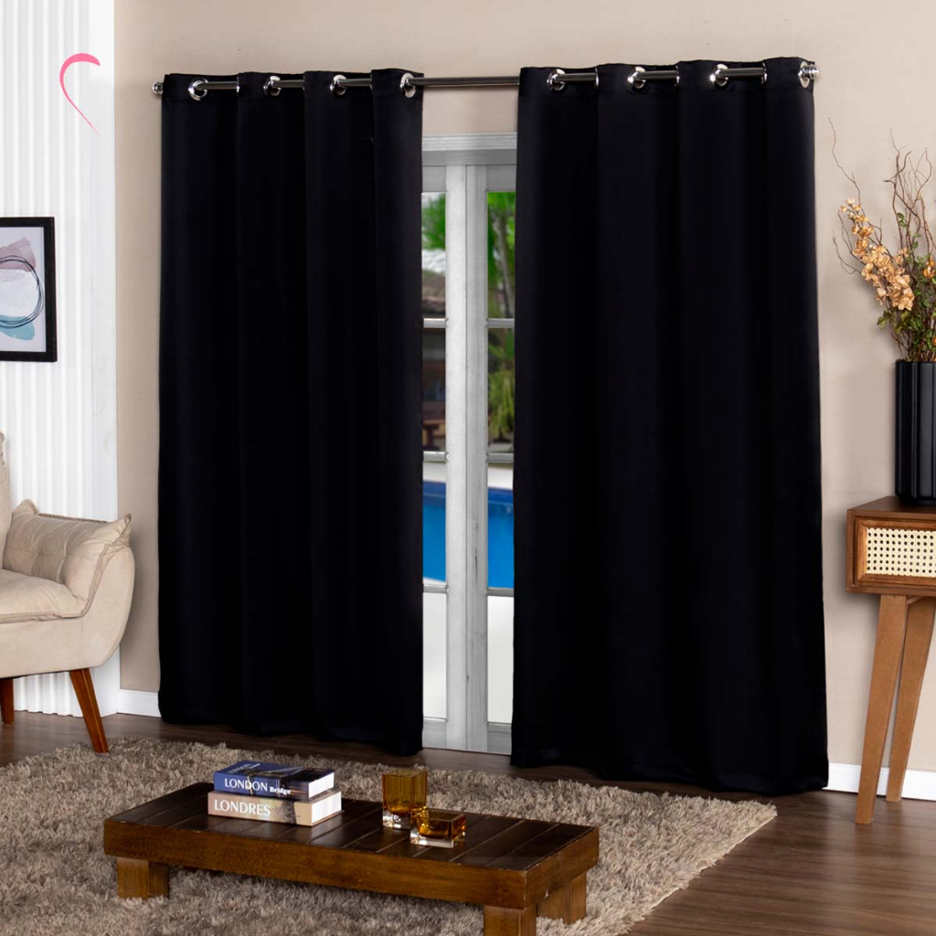Cortina Blackout Veda Luz Tecido Corta Bloqueia Luz Blecaute Para Sala Ou Quarto Black Out com Ilhós Cromado - Várias Cores