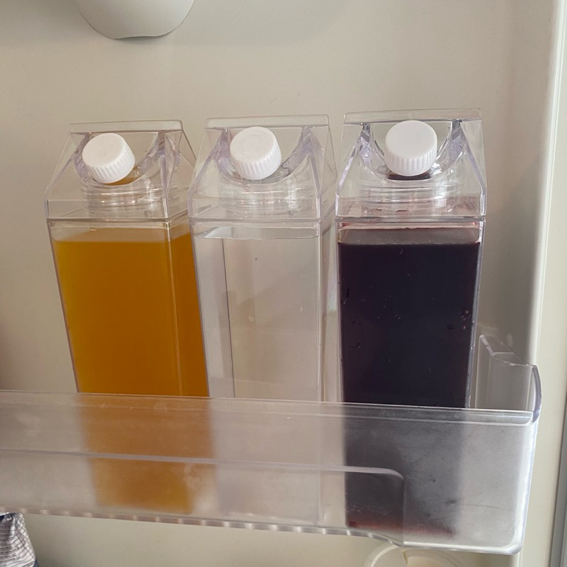 Garrafa de acrílico 1 litro para geladeira de leite suco ou iogurte transparente grande - jarra garrafinha quadrada