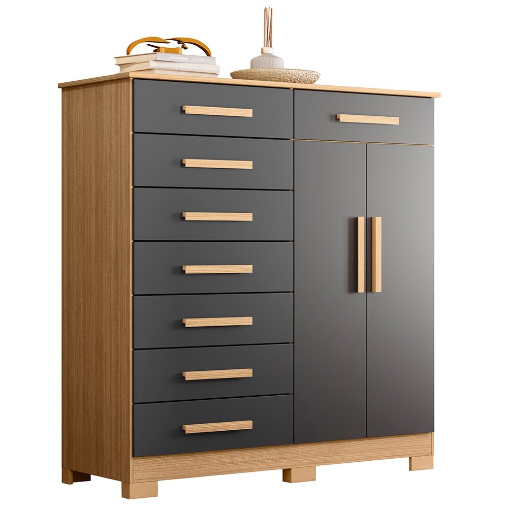 Cômoda Quarto Fontana com 7 Gavetas e 2 Portas Nature/Titanium