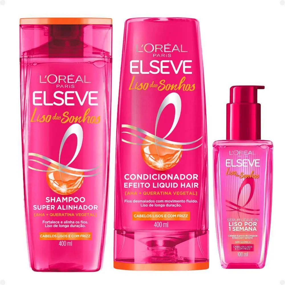 KIT ELSEVE LISO DOS SONHOS: SHAMPOO, CONDICIONADOR 400ML E SéRUM LEAVE-IN 100ML