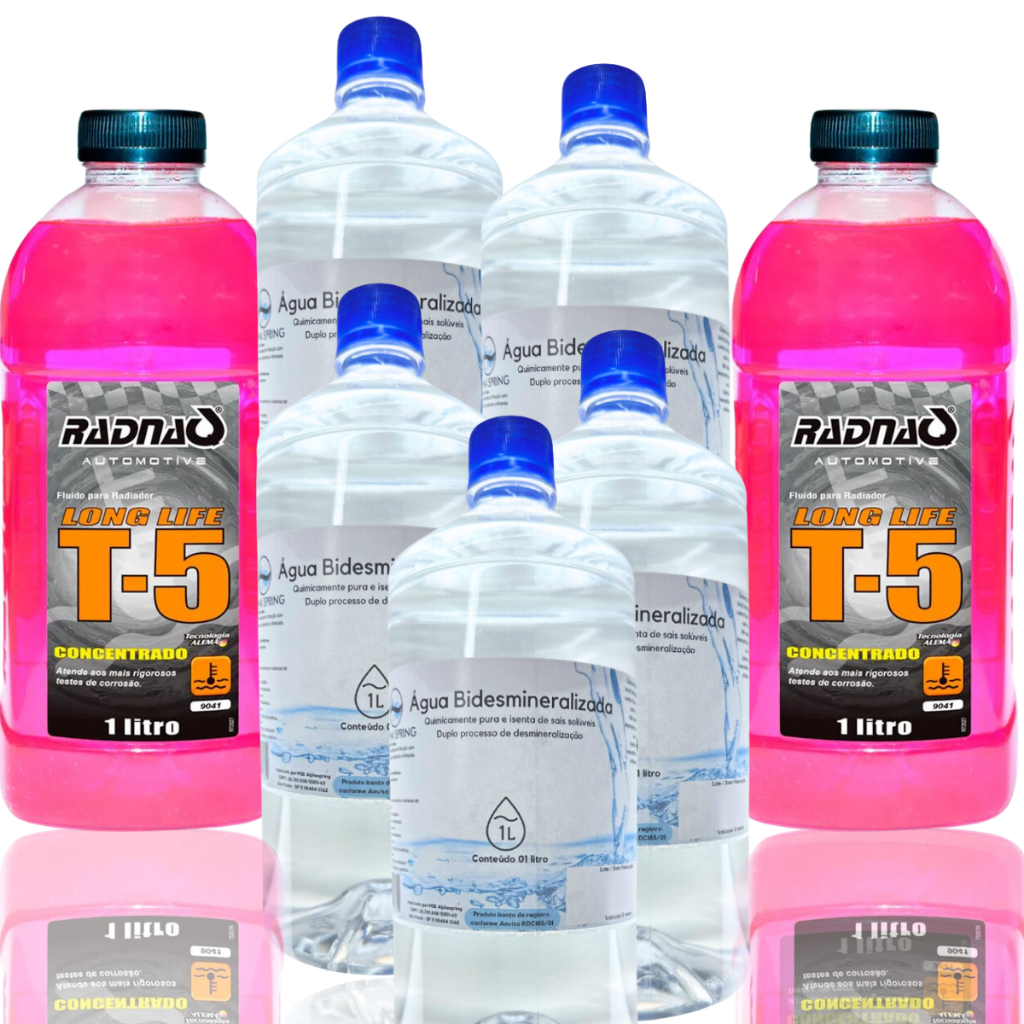 Agua Radiador + Aditivo Concentrado Radnaq T5 Rosa Kit 7 Litros arrefecimento