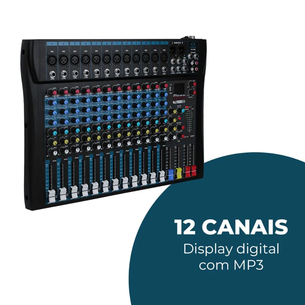 Mesa De Som Profissional 12 Canais Usb Mp3 Display Com Equalização Por Canal