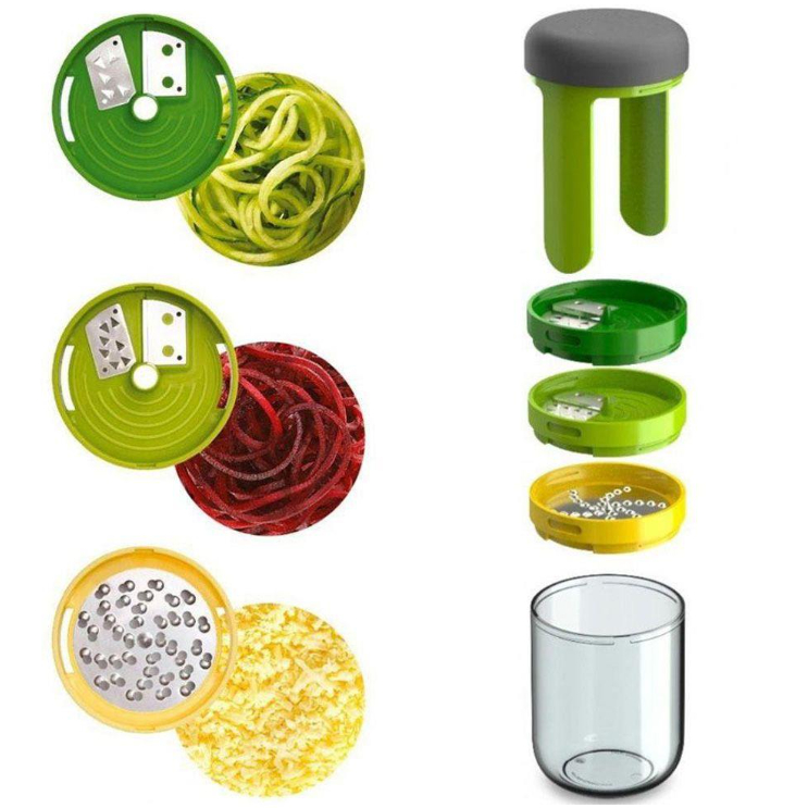 Fatiador Ralador Cortador Multifuncional 3 em 1 Espiral Para Cortar Batata Frutas Vegetais Queijo 3 Lâminas