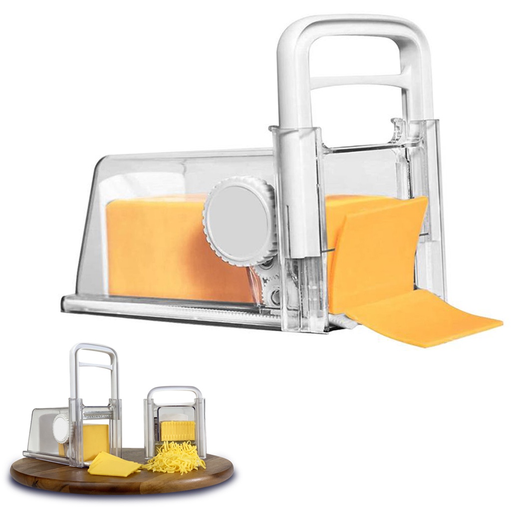 Cortador de Queijo Presunto Manual 4 em 1 Ralador Fatiador Lamina Pote Hermetico Armazenamento Resistente Alimento Culinaria