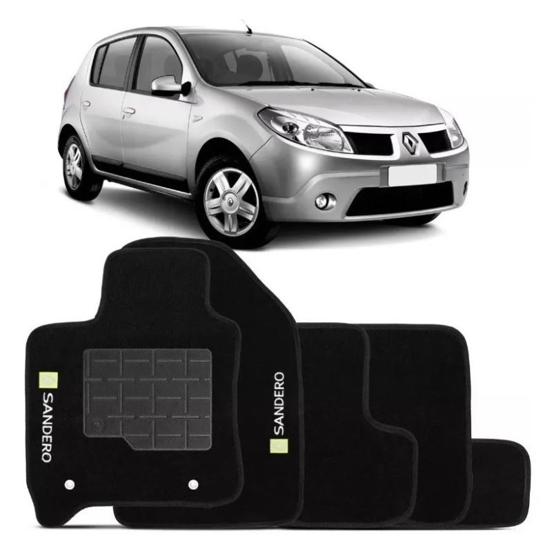 Jogo Tapete Carpete Sandero 2008 2009 2010 2011 2012 2013 2014 Logo Bordado