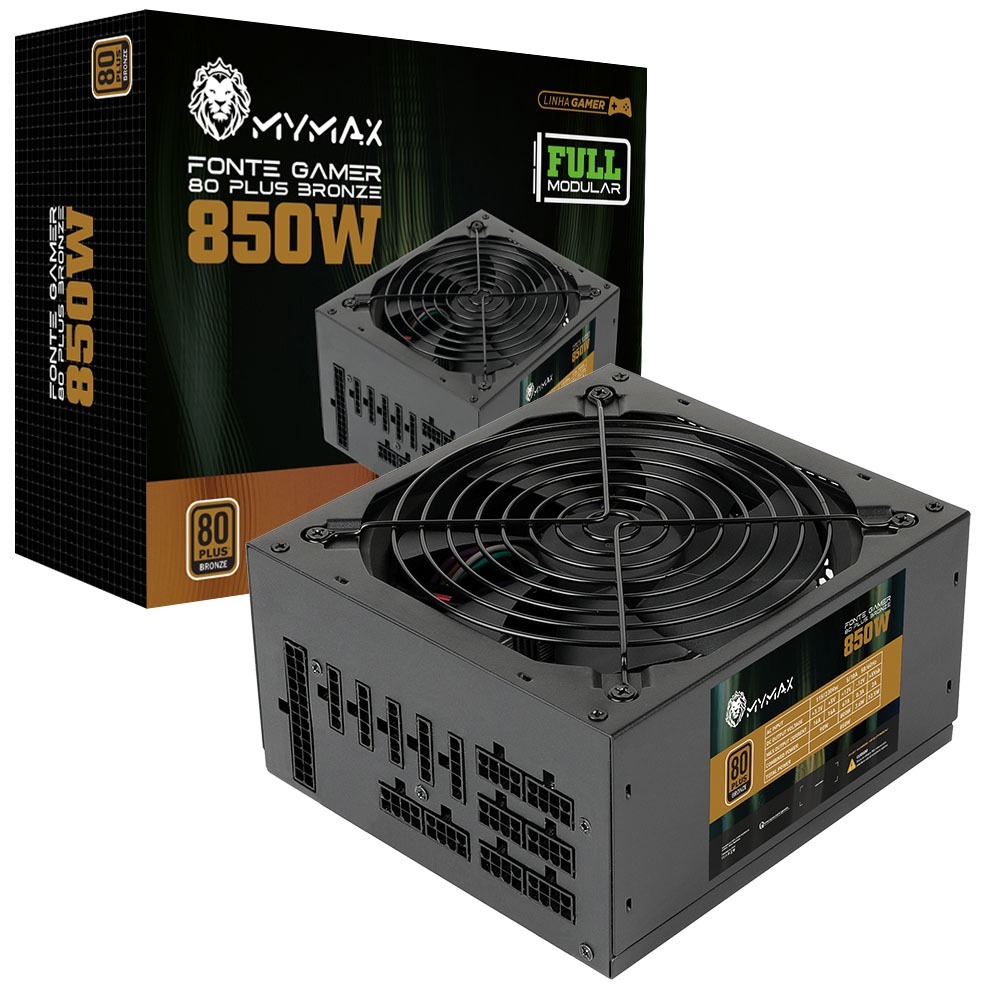 Fonte Mymax ATX Gamer, 850W, 80 Plus Bronze, PFC Ativo, Bivolt, com Cabo, Preta