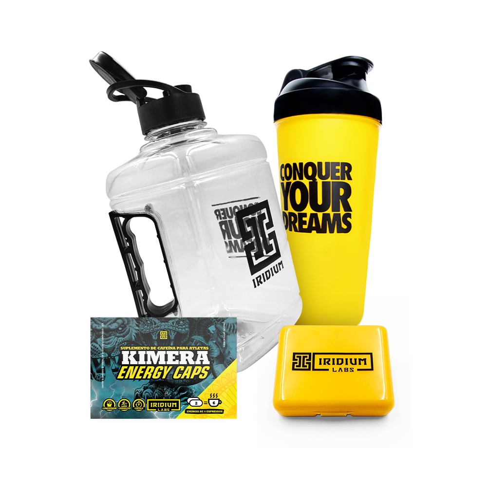 Kit Coqueteleira Copo unico + Galão 1,5 + Porta Caps + Kimera Energy Caps (unitario)