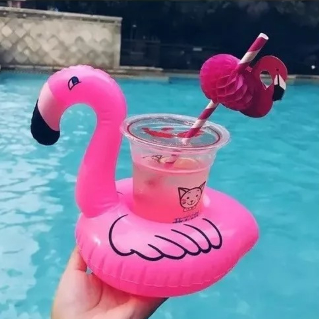 Kit 5 Boias Porta Copo Flamingo Flutuador P/ Praia Piscina Festa