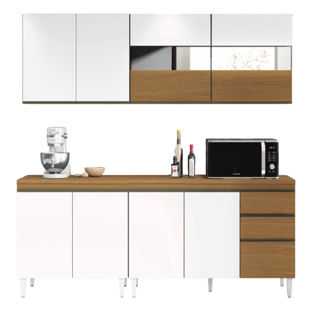 Armário de Cozinha Completa Itatiaia com Balcão 9 Portas 2 Gavetas Nicho para Micro Ondas Namur Cina