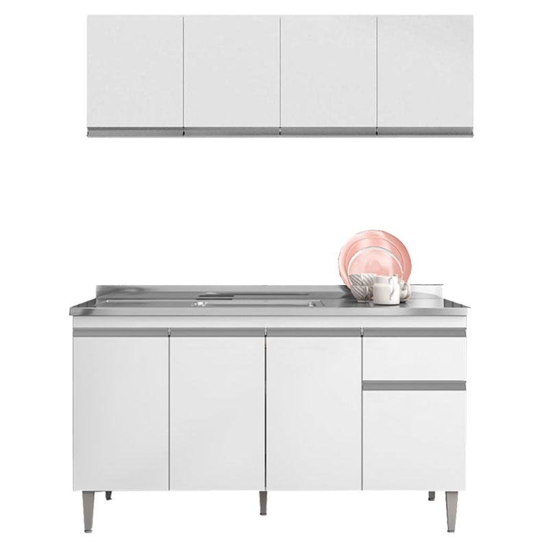 Balcão de Pia Tatiane 145 Cm e Armário Aéreo Andréia 4 Portas 150 Cm Branco Brilho - Ajl