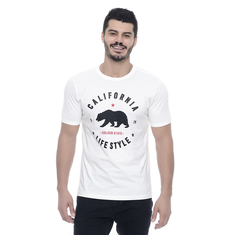 Camiseta Masculina Gola Redonda Manga Curta Estampada Califórnia Off White