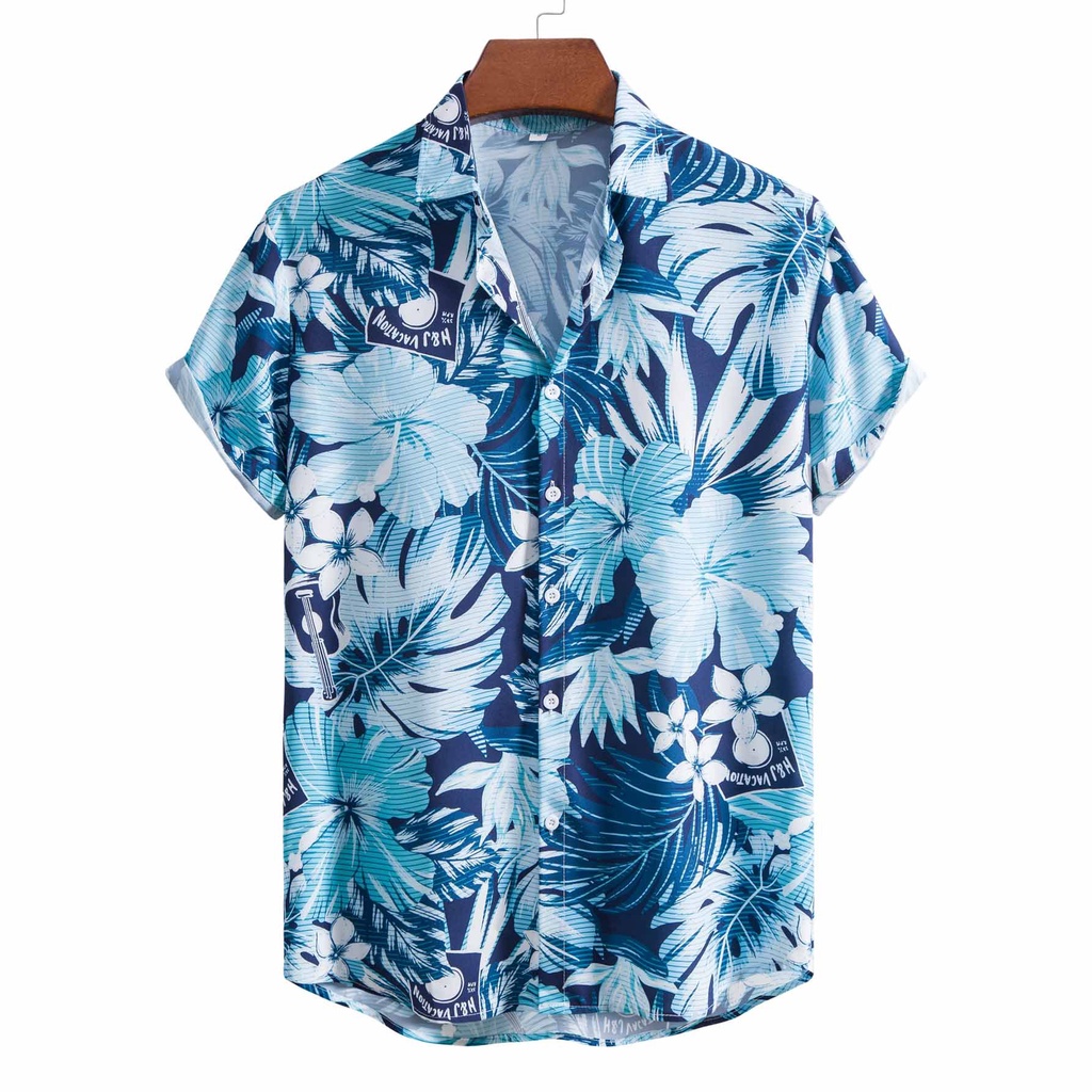 2023 Nova Camisa Floral De Manga Curta Azul Solta Com Estilo Masculino Mais Roupas De Verão Havaianas Causais De Praia