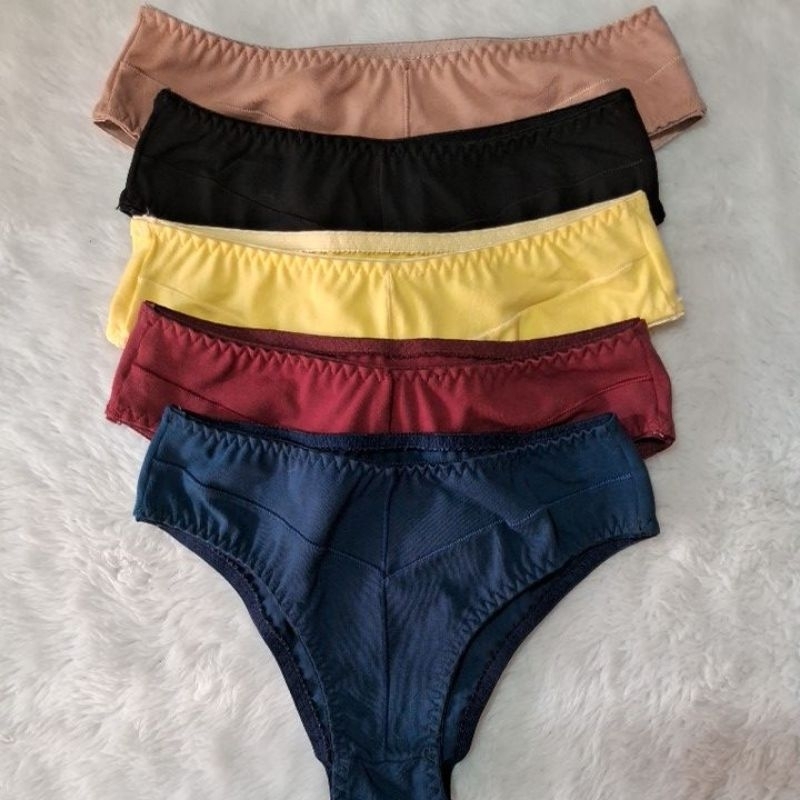 Kit com 3 calcinhas ARGÉLIA cintura média. Lingerie confortável para o seu dia a dia. Roupa íntima feminina com tecido poliéster, forro 100% algodão e elástico colorido. CalSinha perfeita, com preço de revenda e direto da fábrica você encontra na Mescla