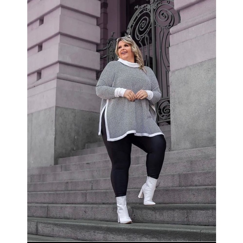 Blusa Plus Size Poncho Trico Gola Boba Com Abertura Lateral De Tricot Inverno