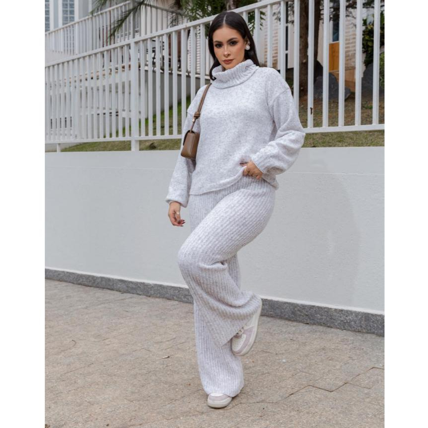 Conjunto Inverno De Frio Pantalona Com Gola Mousse Tricot e Trico Lançamento 2025