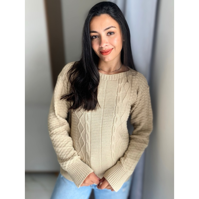 Suéter Blusa Tricot com trança gola canoa blusa manga comprida AGDA inverno blogueira moda tricô premium