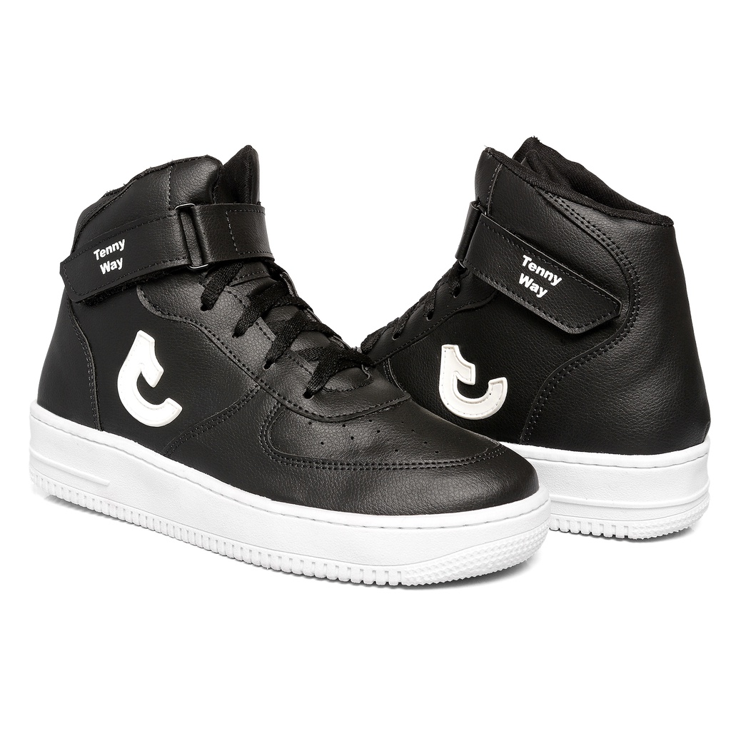 Tênis Cano Alto Sneaker Unissex Preto Com Cadarço E Velcro Blaqueado Reforçado Sola Alta