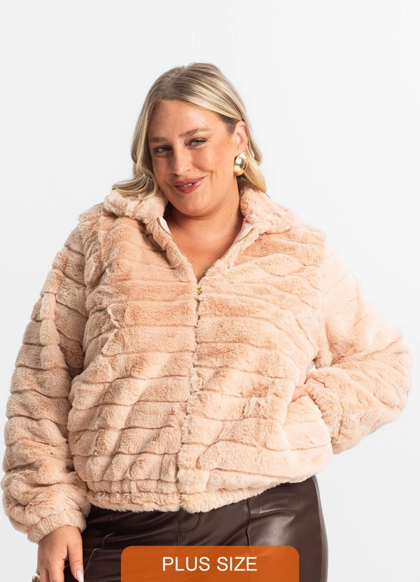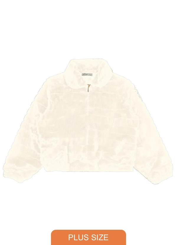 Secret Glam - Jaqueta Feminina Plus Size com Pelo Bege
