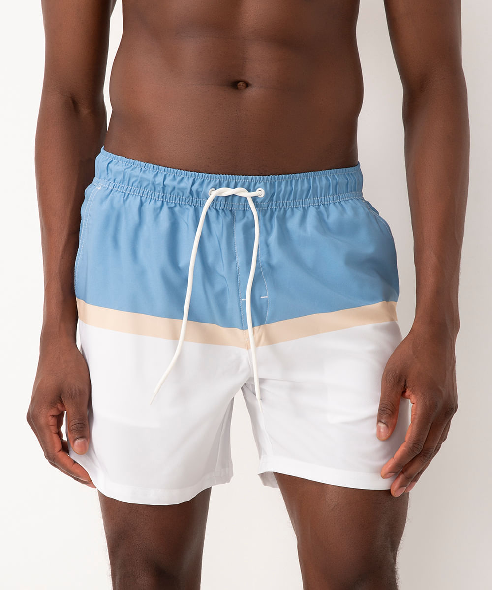 short listrado com elástico cordão e bolsos azul