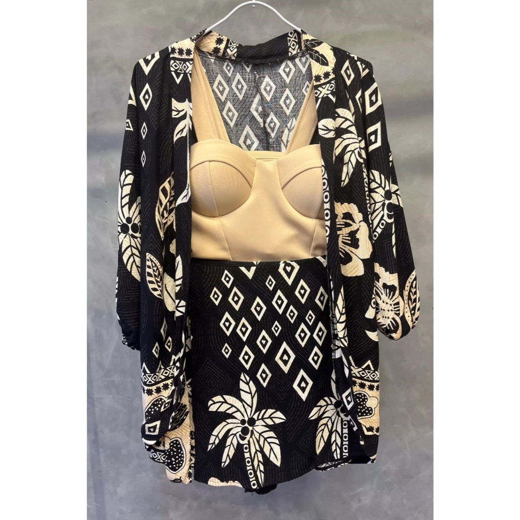Conjunto Mayara Lira Shop Kimono e Shorts-saia Estampado Preto 3