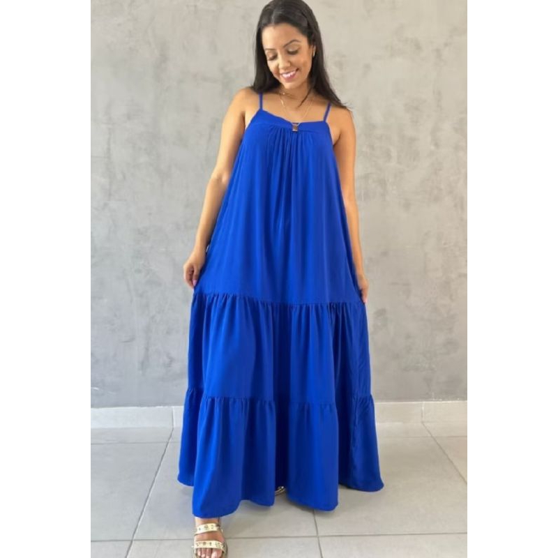 Vestido Longo Feminino em Vescose Com Alça Fina Ajustavel