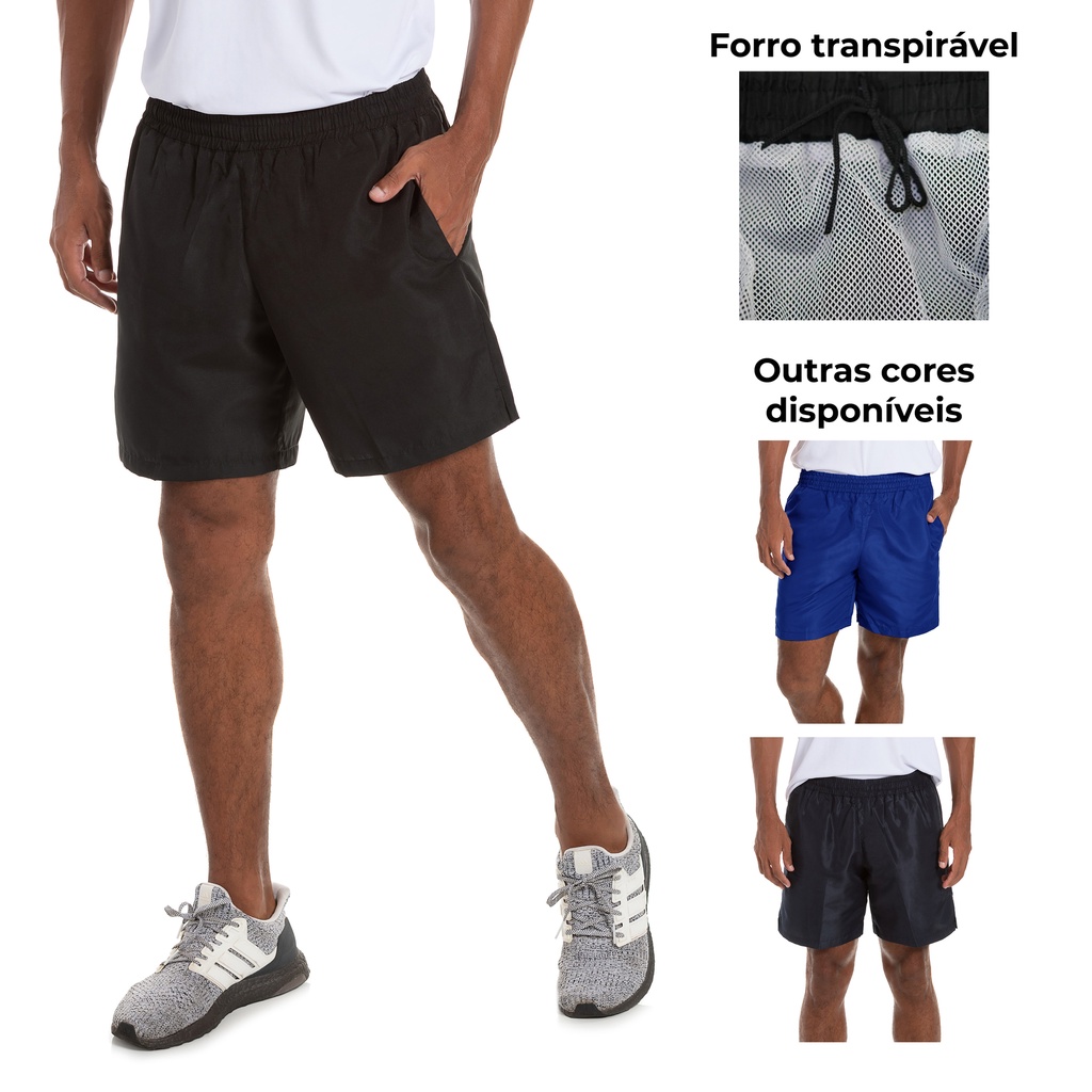 Short Básico Esportivo Forro Telinha com Fenda Lateral Tactel Masculino Adulto e Plus Size