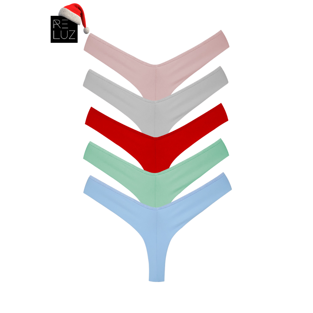Kit com 5 Unidades de Calcinhas Sem Costura Fio Dental - Cores Variadas e Sortidas