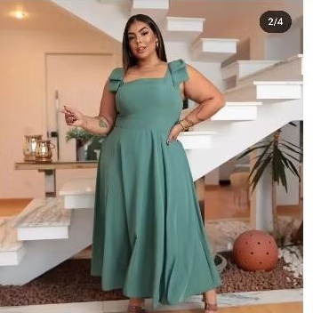 Vestido plus Size de Festa Midi Feminino Casamento Madrinha Batizado Godê Longo /alça de Laço
