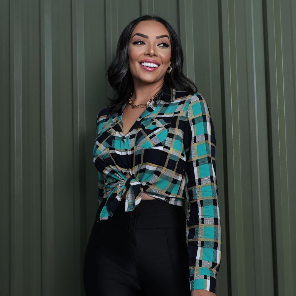 Camisa blusa xadrez feminina viscose de manga longa botões e bolsos moda social do P ao G4 plus size