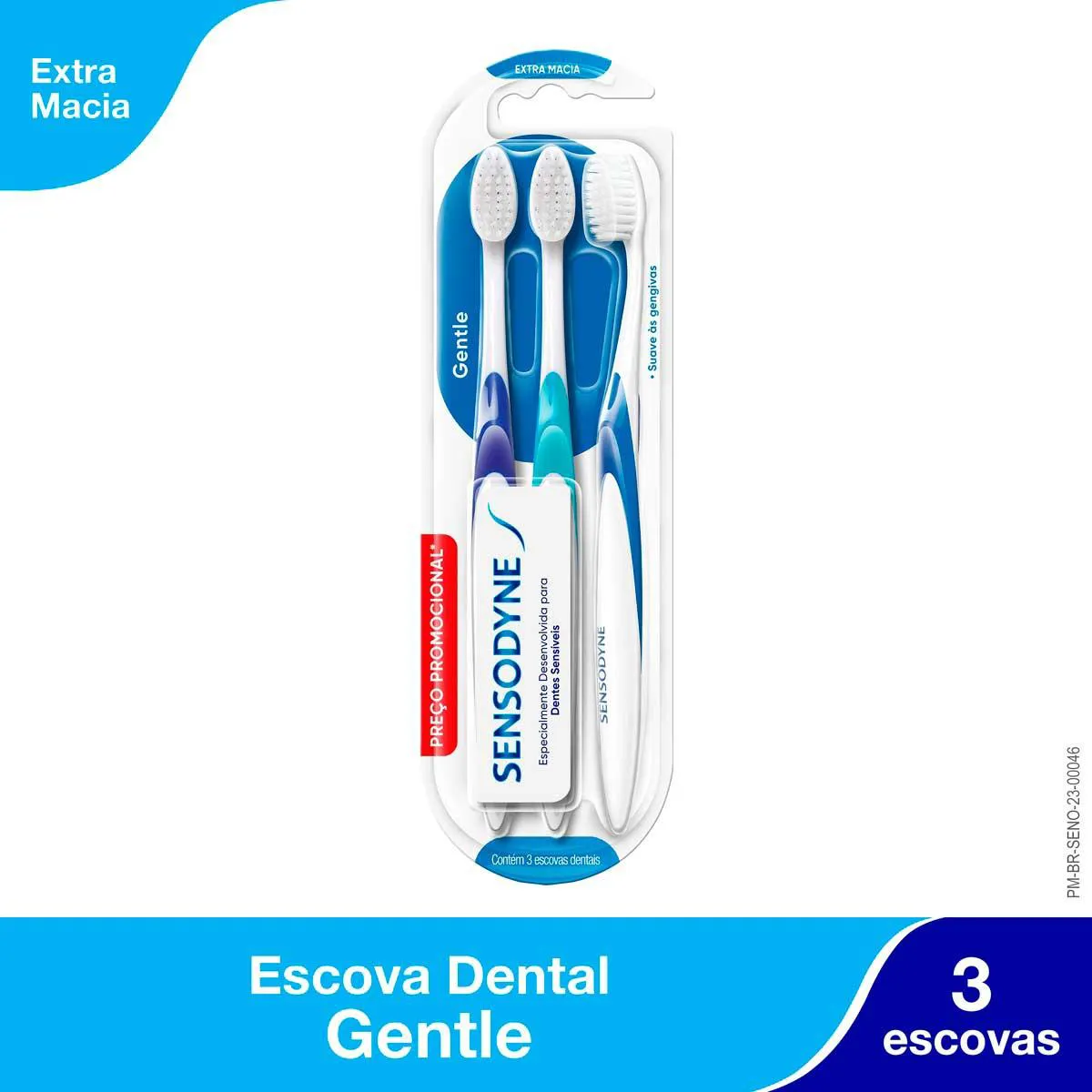 Kit Escova de Dente Sensodyne Gentle 3 unidades