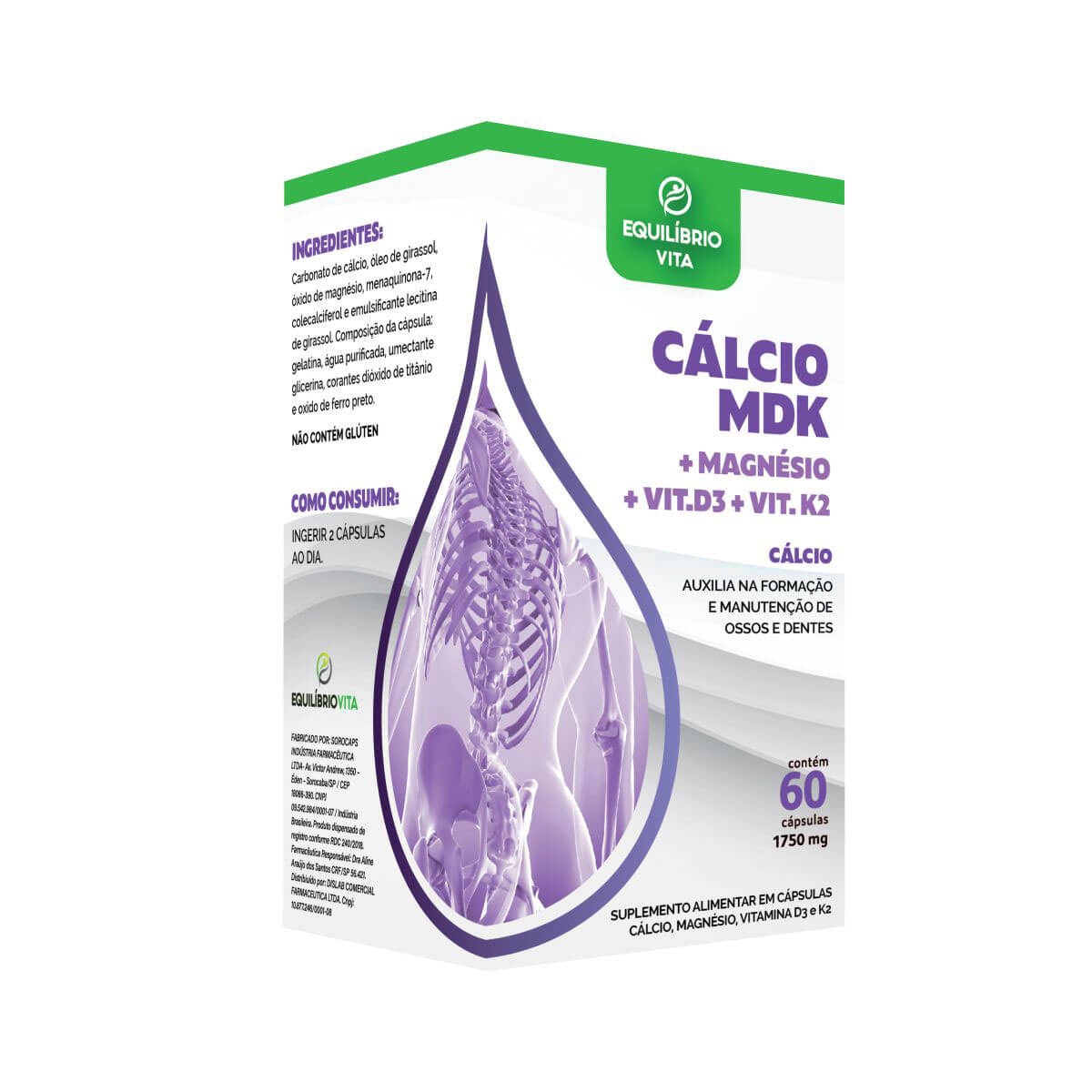 Suplemento Alimentar Cálcio MDK 1750mg Equilíbrio Vita com 60 Cápsulas
