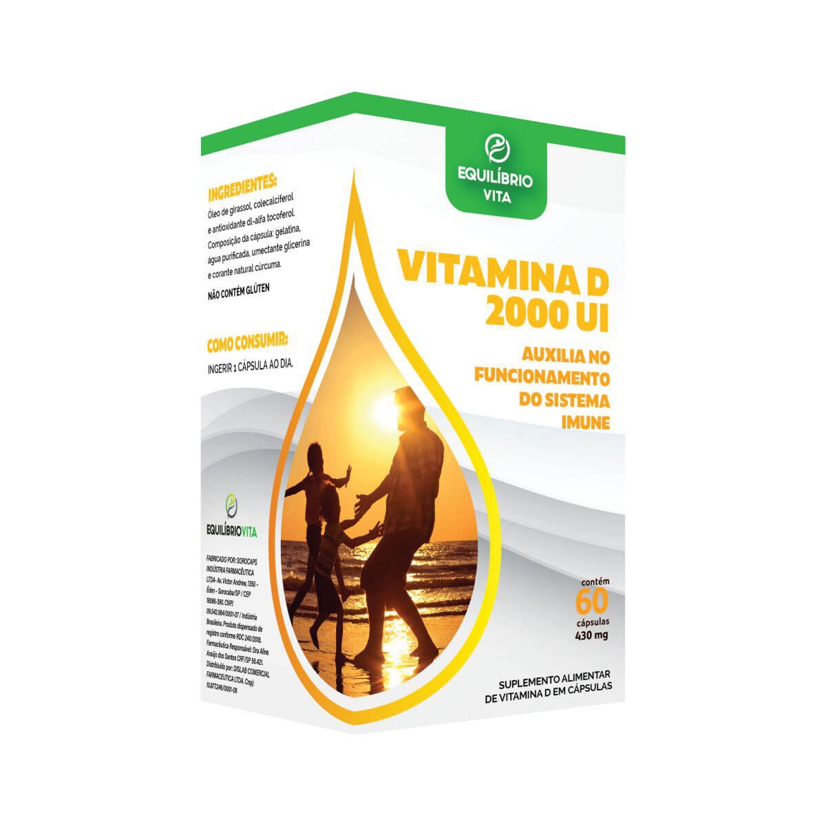 Suplemento Alimentar Vitamina D 2000 UI Equilíbrio Vita com 60 Cápsulas