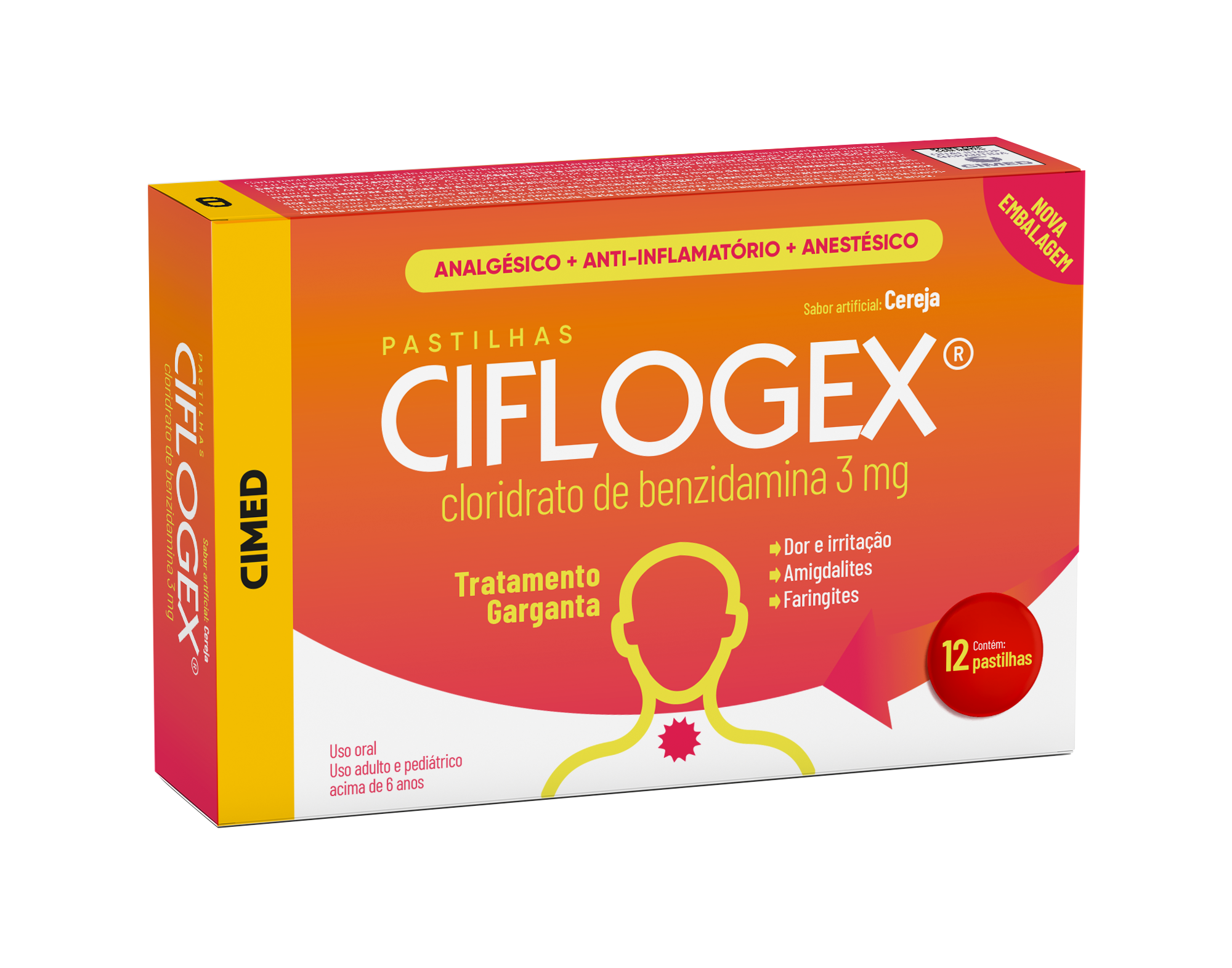 Pastilha Ciflogex 3mg Sabor Cereja 12 unidades
