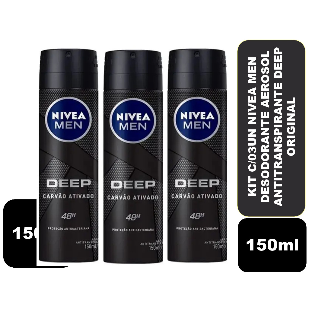 Kit com 03un Nivea Men Desodorante Aerosol Antitranspirante Deep Original 15