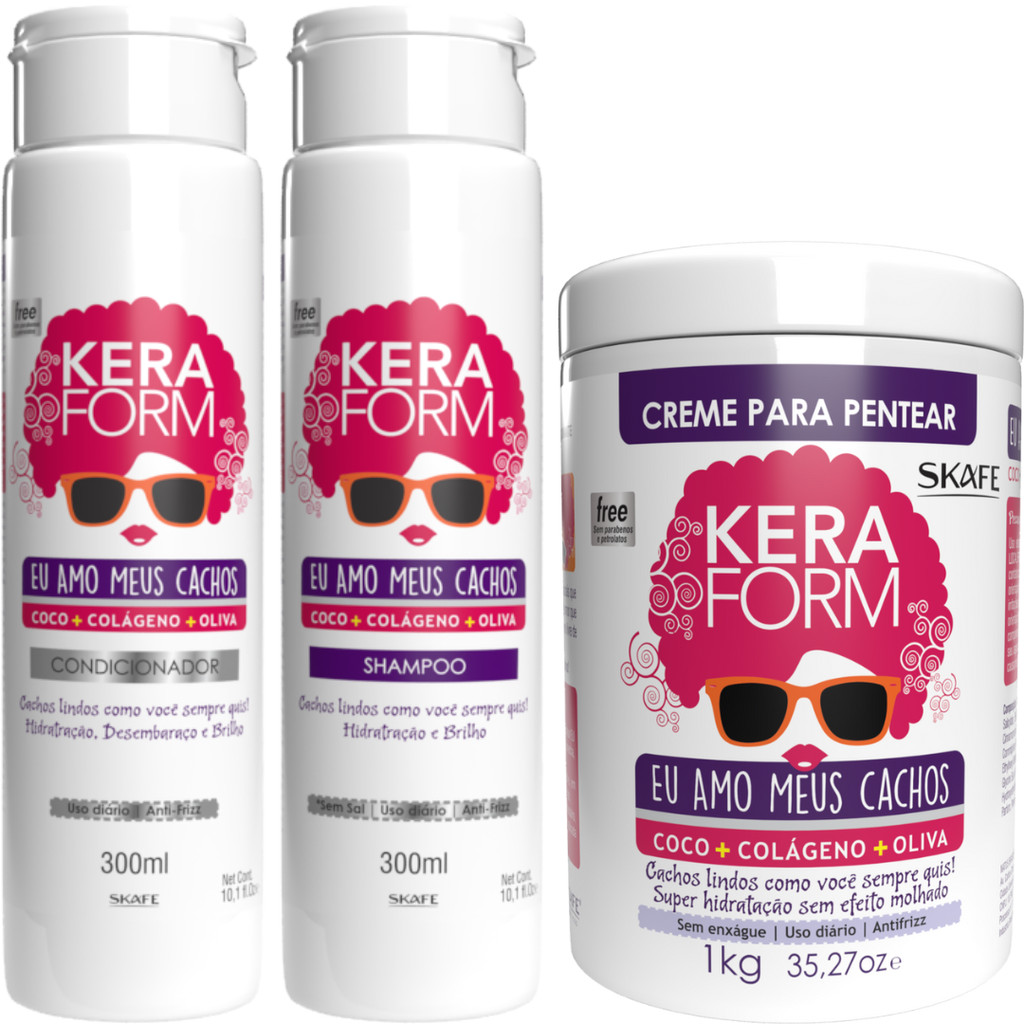 Kit Keraform Eu Amo Meus Cachos - Shampoo 300ml | Condicionador 300ml | Creme de Pentear 1kg